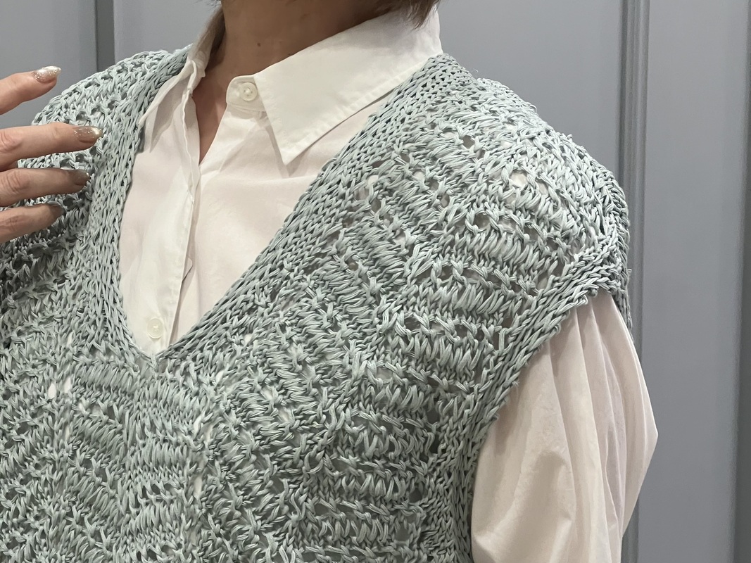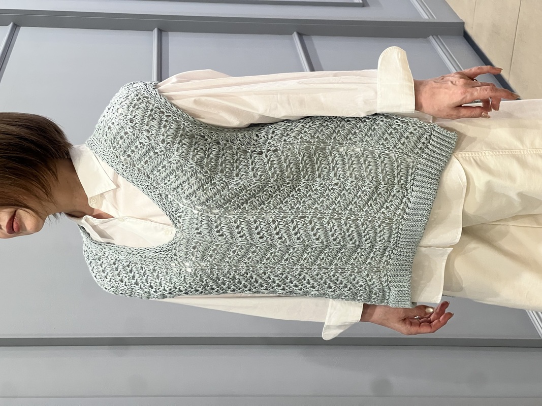 本日は、春らしいヘリンボーン柄編みのコットンベストをご紹介いたします。