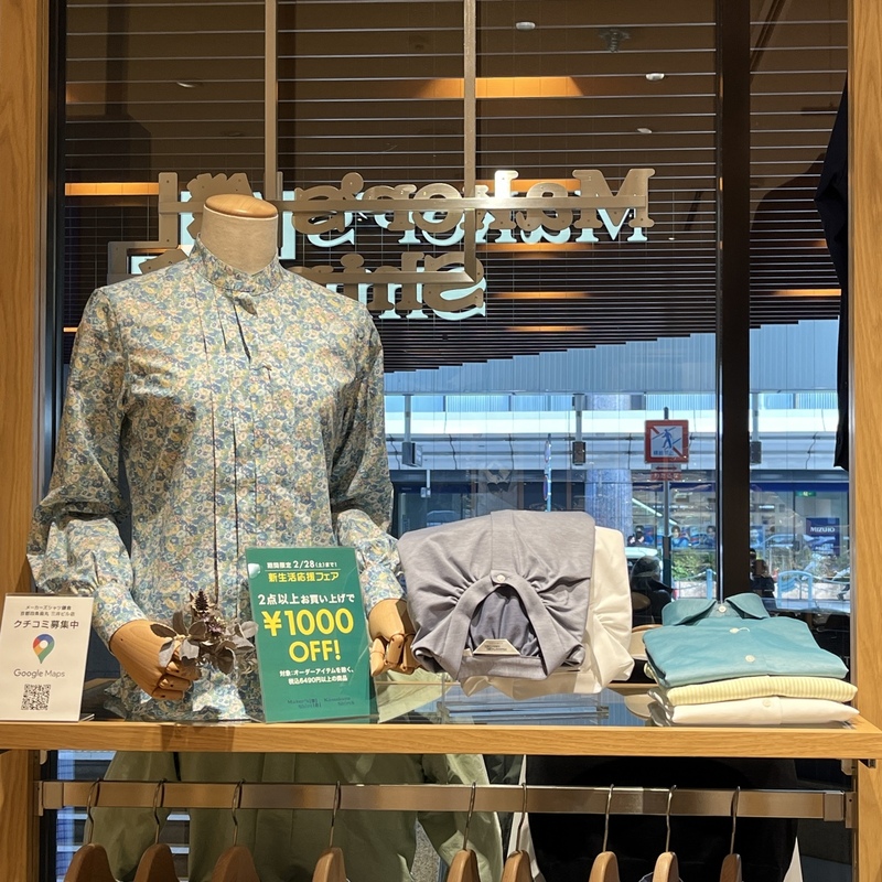 税込6940円以上の商品を2点以上購入で1000円OFFに!普段セールをしない鎌倉シャツをお得にお買上いただくチャンスです。組み合わせは自由。このシャツを新調して気分を明るくしませんか?(オンラインショップでは条件が変わります。詳しくは生地をご覧くださいませ。)
