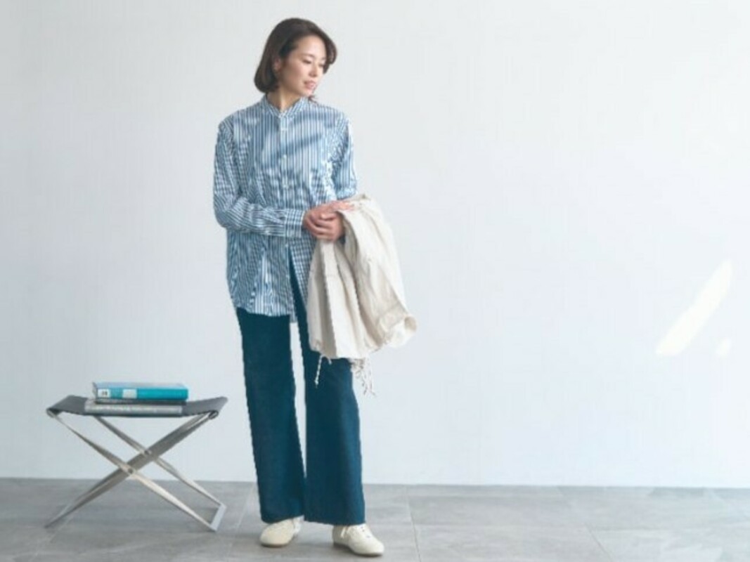 ウォッシュ加工を施していないネイビーは、綺麗めカジュアルはもちろん