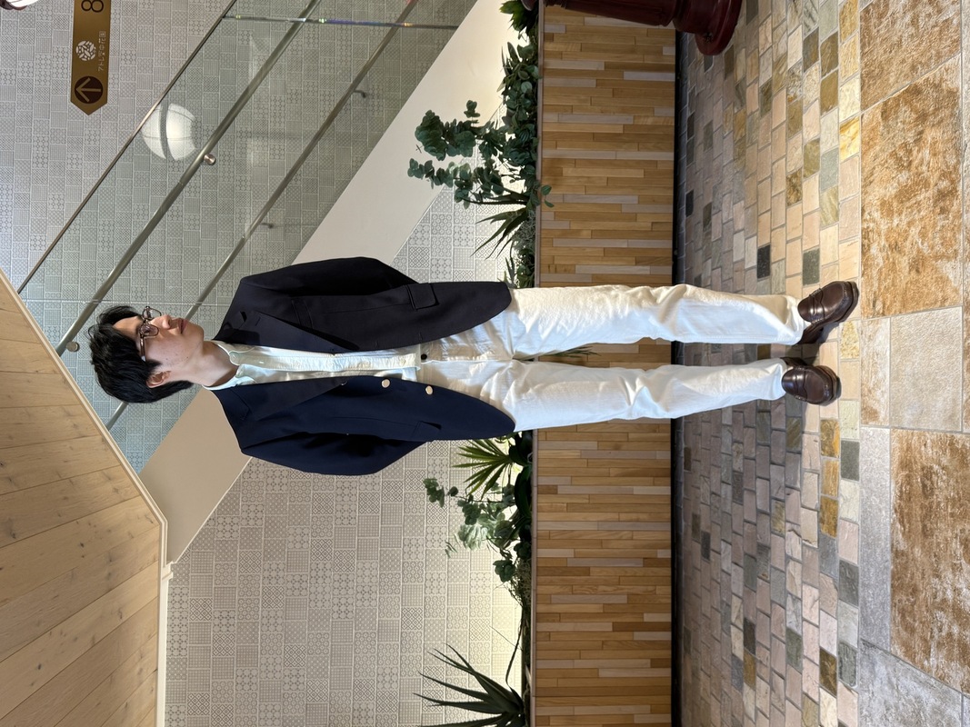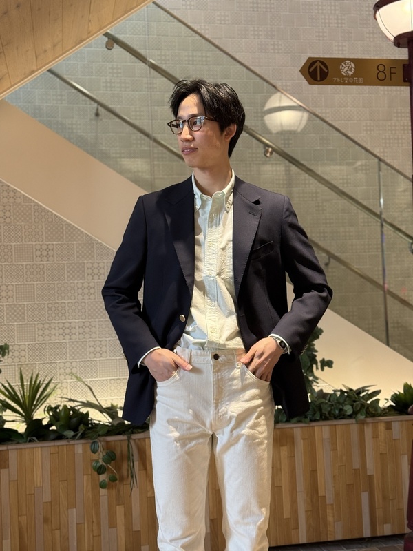 ジャケットを合わせると品良く、程よい抜け感のあるビジネスカジュアルスタイルが完成します。