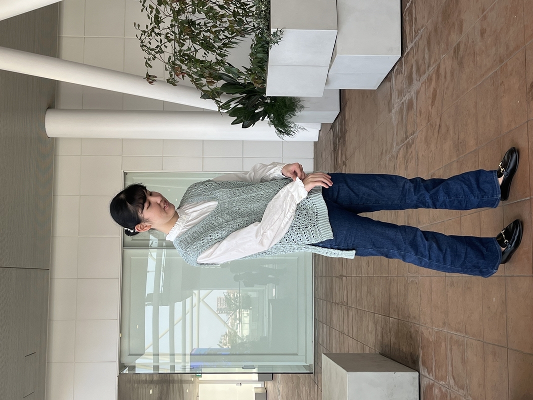 ややゆったりめのベストで、しっかりお尻まで隠れるサイズ感です。