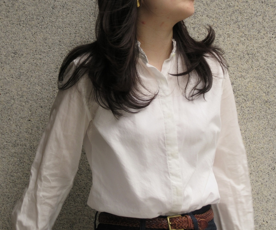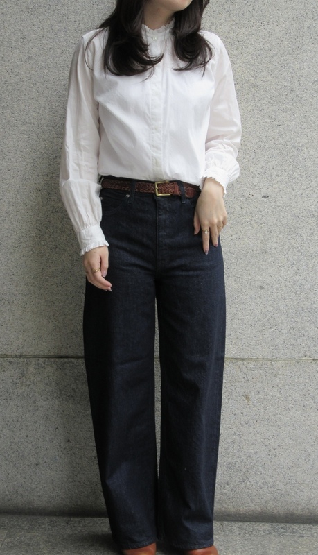 本日ご紹介するのは、鎌倉シャツの「スタンドフリルシャツ・カーディガン・デニム」を使ったコーディネートです。 まだまだ肌寒い日もありますがお色味を明るく、これから春にオススメのコーディネートです。