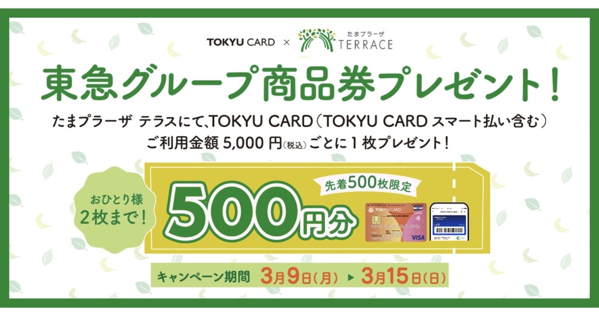 さらにたまプラーザテラス館内では9日からTOKYUカードでお支払いいただくと、東急グループ商品券プレゼントのキャンペーンも実施中です。