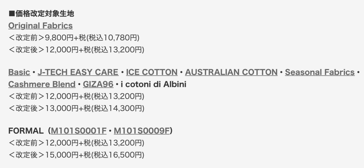 3月17日より、品質向上と安定供給するために一部生地の価格改定がございます。