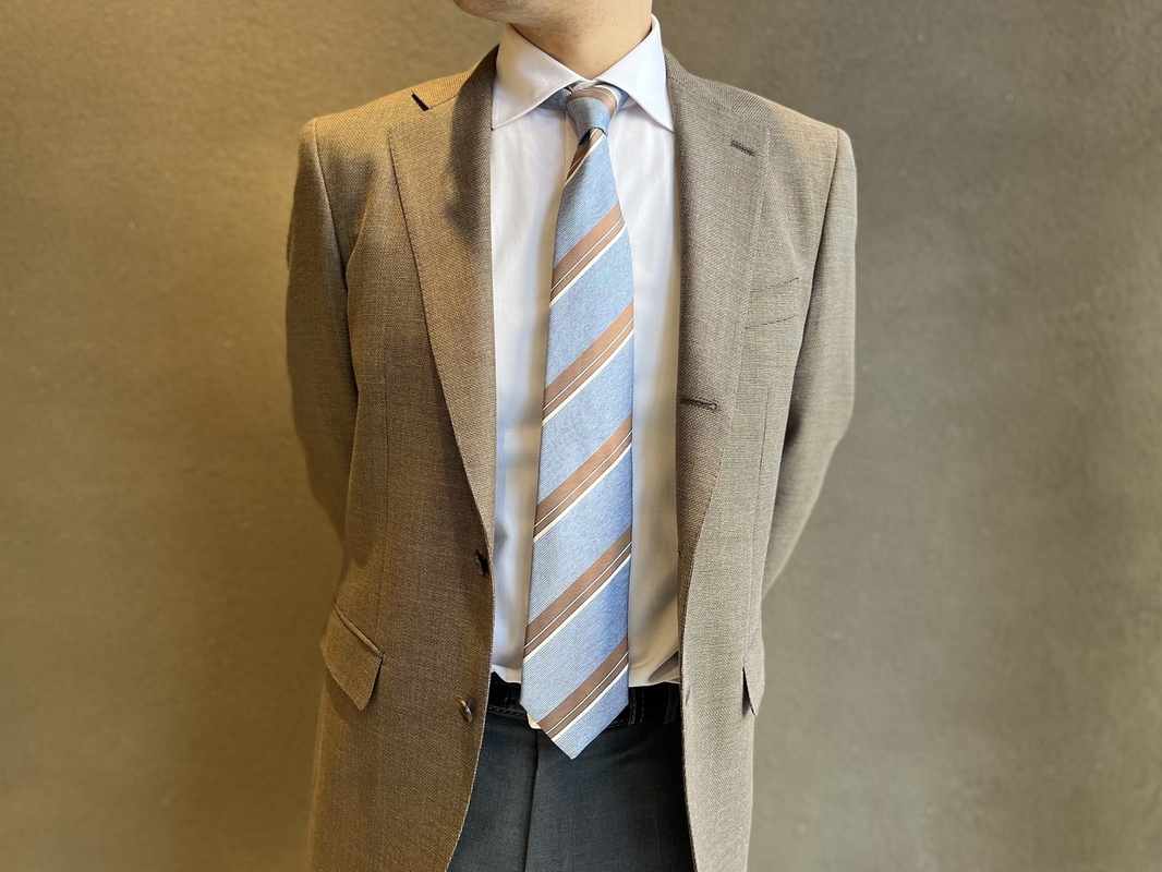 ネクタイは新作のヴィンテージラインのもので、春夏にピッタリなデザインです。