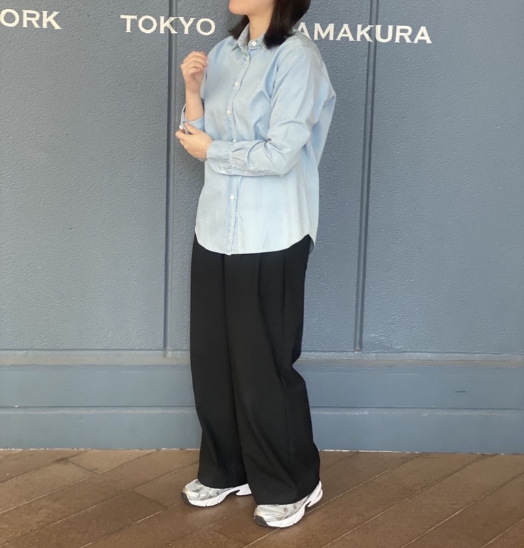春の装いにデニムシャツ。ぜひ色々な着回しでコーディネートを楽しんでくださいね。