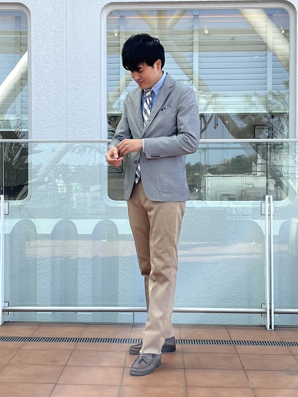 チノパンに上品な光沢感があり、ジャケットやネクタイとの相性抜群です。