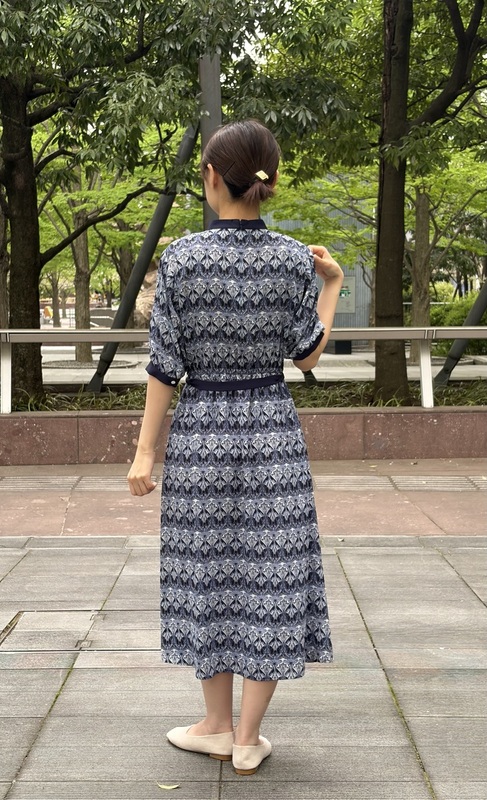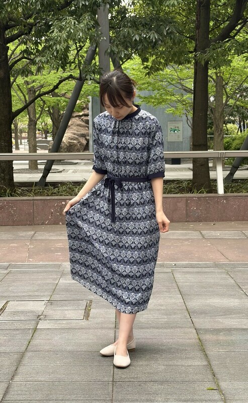 大胆かつ繊細な総柄プリントのワンピースをロング丈にし、