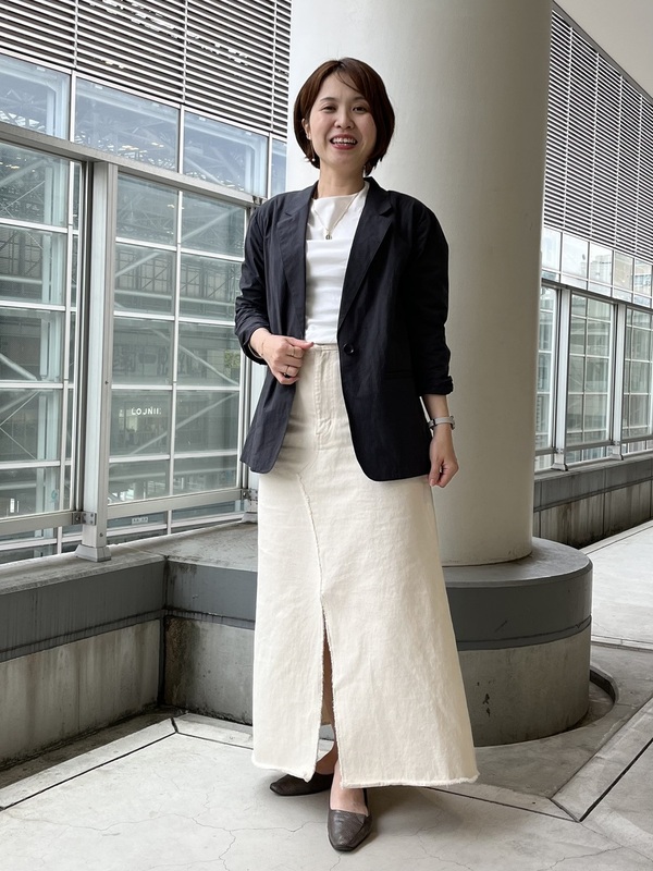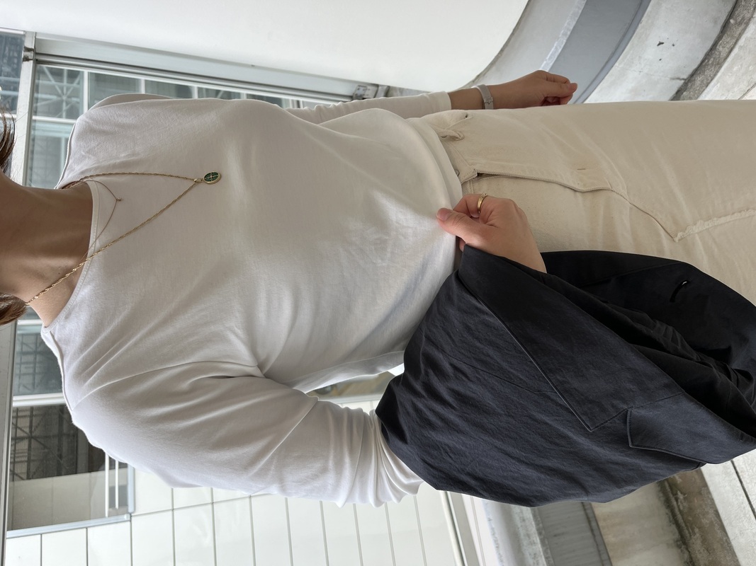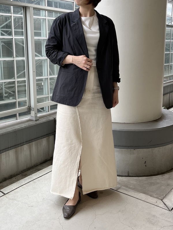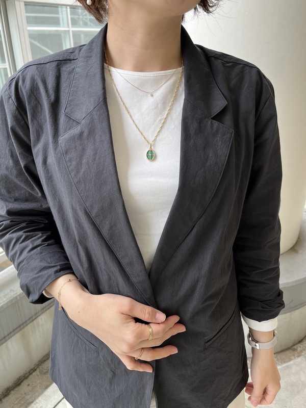 またあわせてコーディネイトしているジャケットも袖をまくって着用するのに、まだ今の時期少し肌寒いので【半袖】ではなく【7分袖】である事もとても嬉しいポイントです。