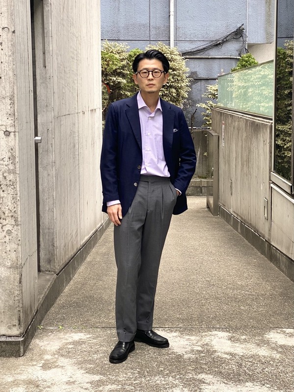 今回はジャケットにウールスラックスを合わせたビジネスカジュアルの着こなしをご紹介。
