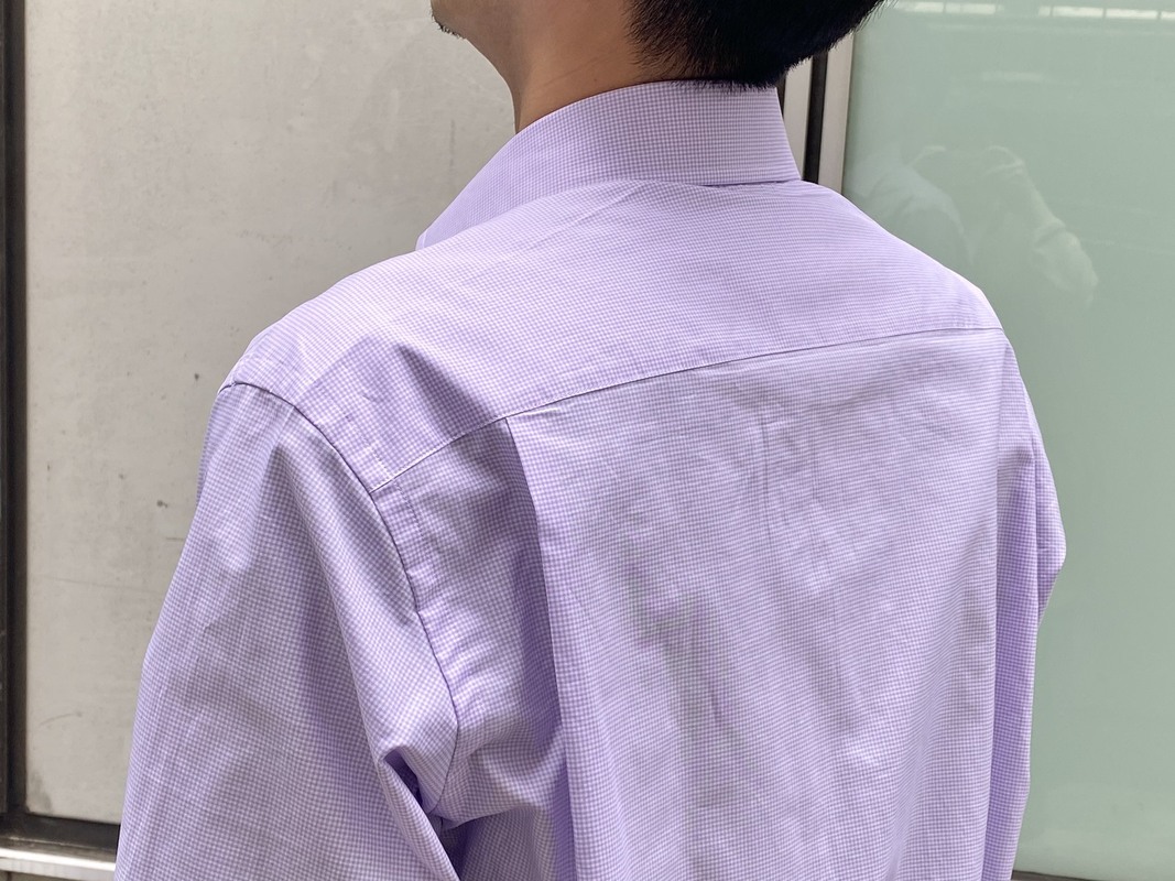 第一ボタンを開けたシルエットが非常に美しいスプレッドカラー。