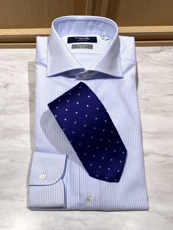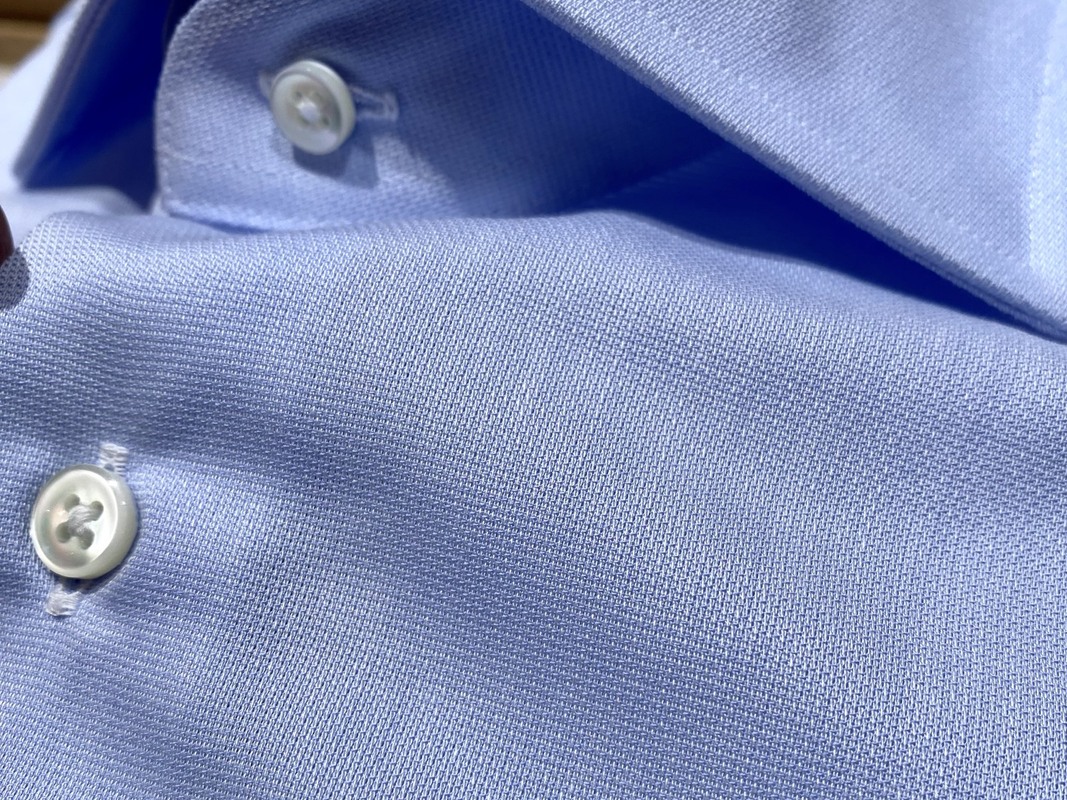 シャツの素材感と相まって、ネクタイをしても暑苦しくならず非常に爽やかです。