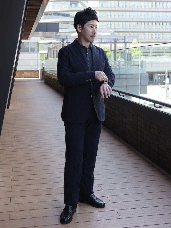 ネイビーのセットアップに、