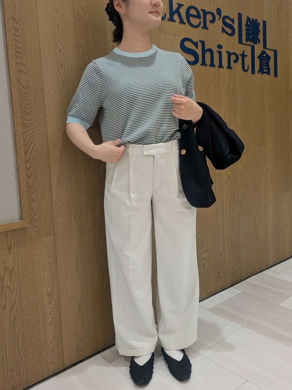 リネンのような清涼感と、ニットならではの上品さを兼ね備えた一着。