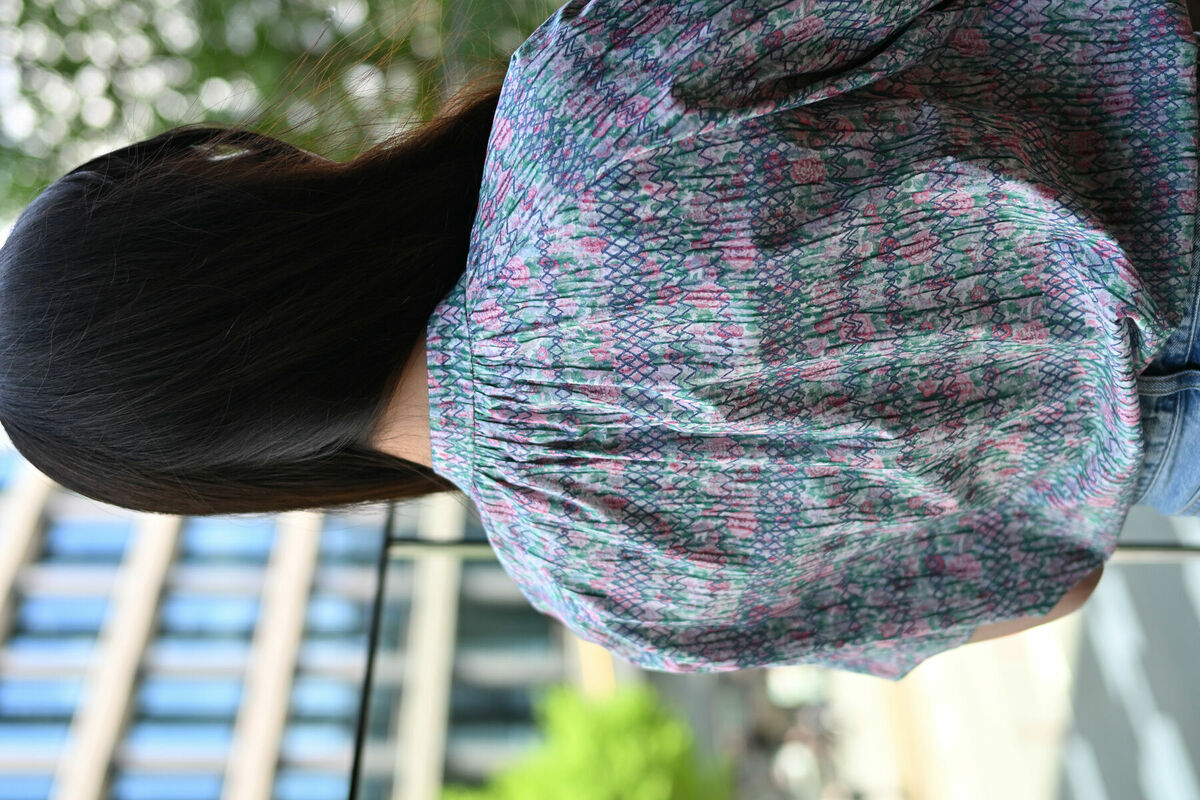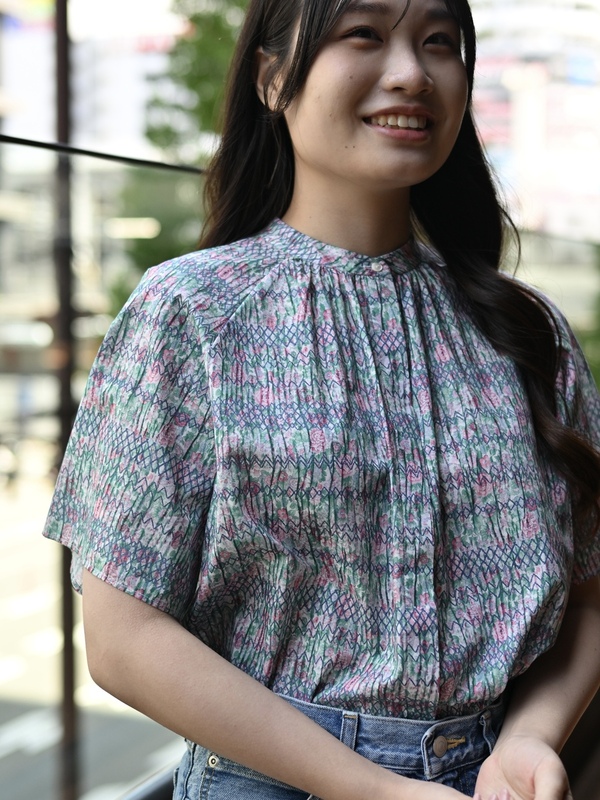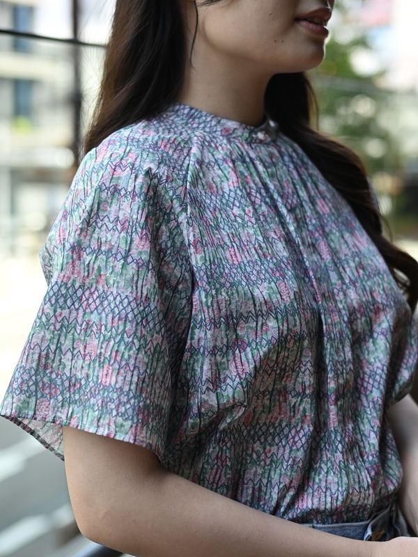 半袖シャツ スタンドギャザー