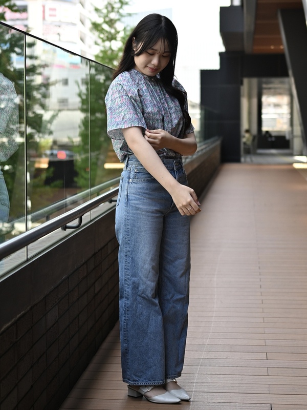 明るめのワイドデニムと合わせて