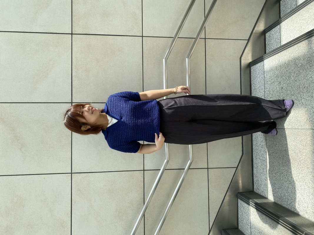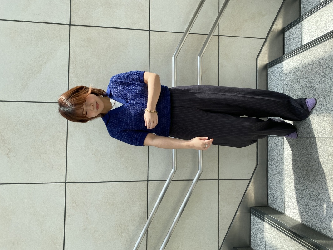 コンパクトな着丈なので、ワイドパンツやスカートも合わせていただけます。