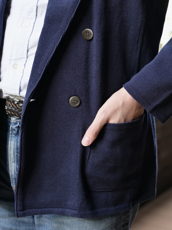 ニット生地でダブル仕様のジャケットをご紹介いたします。 ぜひご覧くださいませ。