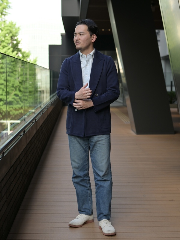 アイビールックがベースのスタイリングです。