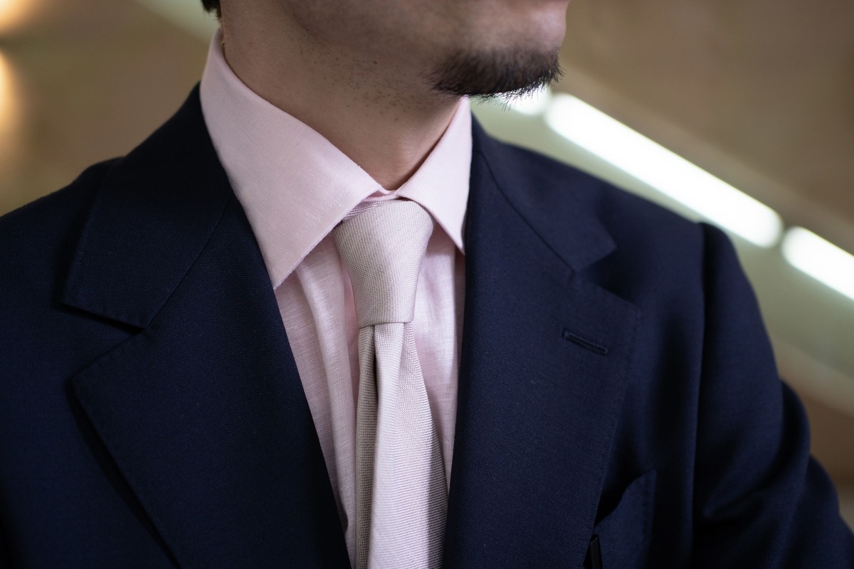 ネクタイを巻いても自然な襟型にしております。