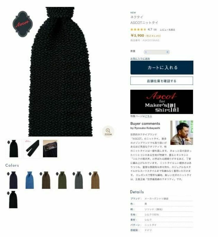 黒のニットタイ。